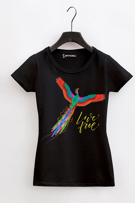 Live Free Peacock - Kid's Round Neck Half Sleeve T-Shirt (Girl)