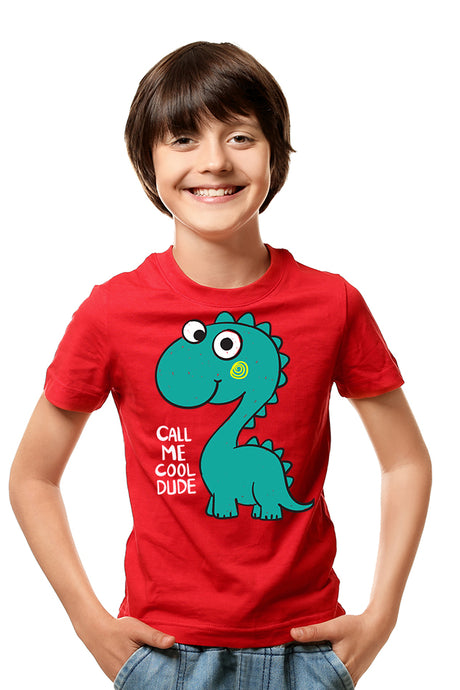 Call Me Cool Dude Dino - Kid's Round Neck Half Sleeve T-Shirt