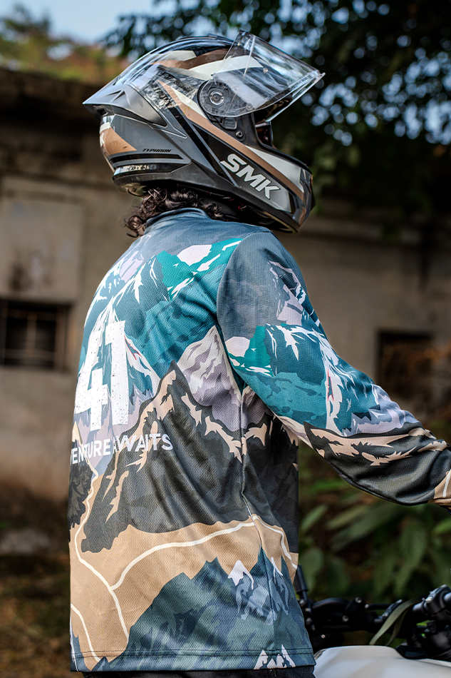 Its regular fit strikes the perfect balance between structure and freedom. Whether layered over body armor or worn on its own, it provides unrestricted movement and a sleek, athletic silhouette. The fade-proof sublimation printing ensures the mountain-inspired artwork stays as vivid as the day you first wore it — no matter how many rides you conquer.