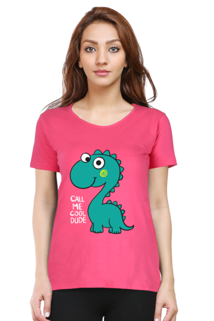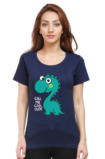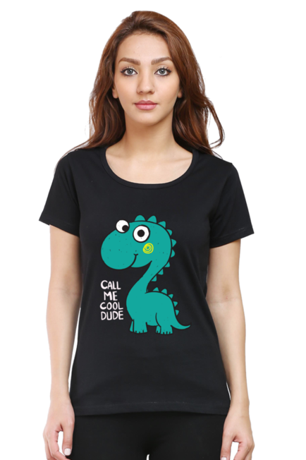 Call Me Cool Dude Dino - Women's Round Neck Half Sleeve T-Shirt