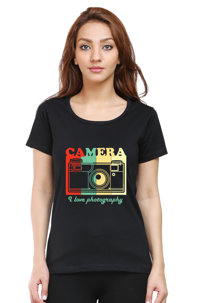 Camera I Love Photography - Women's Round Neck Half Sleeve T-Shirt