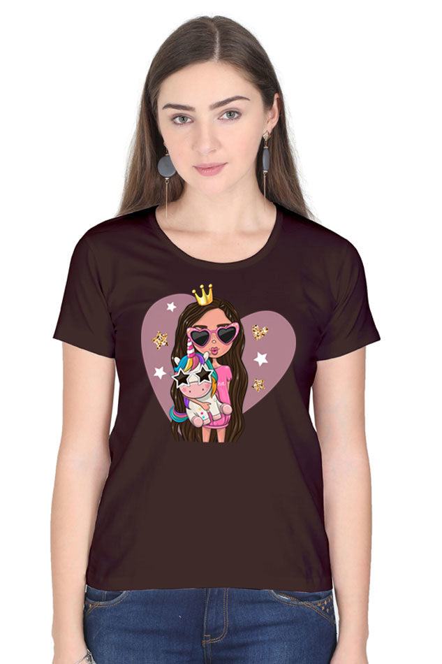 Lovely Girl With Baby Unicorn - Women's Round Neck Half Sleeve T-Shirt