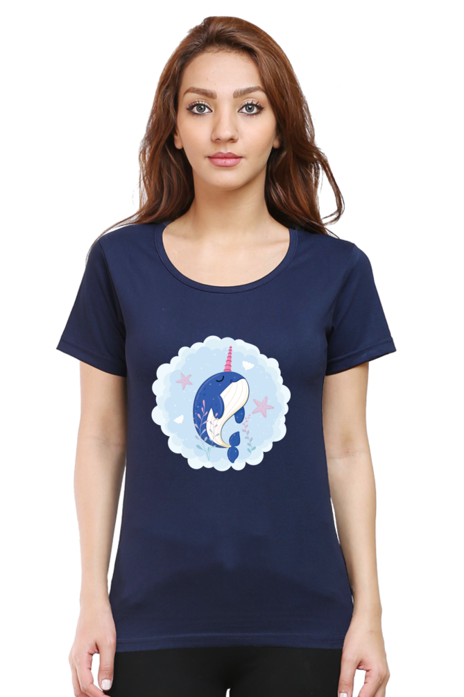 Unicorn Whale - Women's Round Neck Half Sleeve T-Shirt