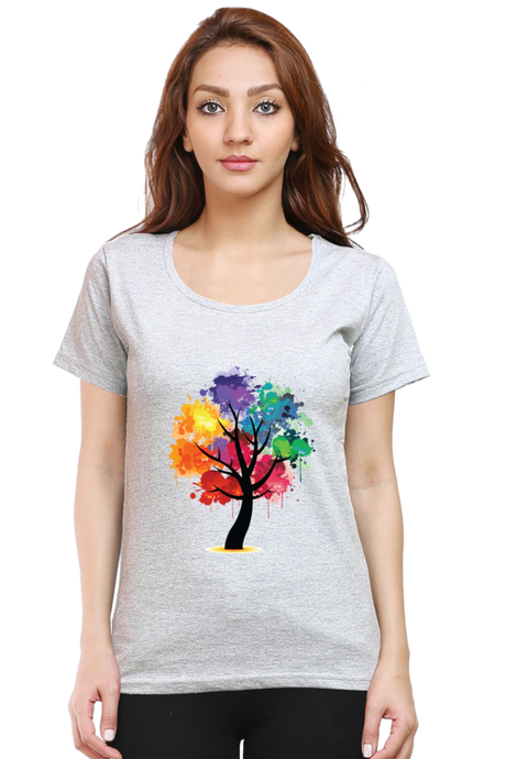 Canvas Painted Tree - Women's Round Neck Half Sleeve T-Shirt