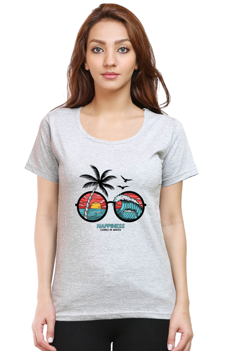 Happiness Comes in Waves - Women's Round Neck Half Sleeve T-Shirt